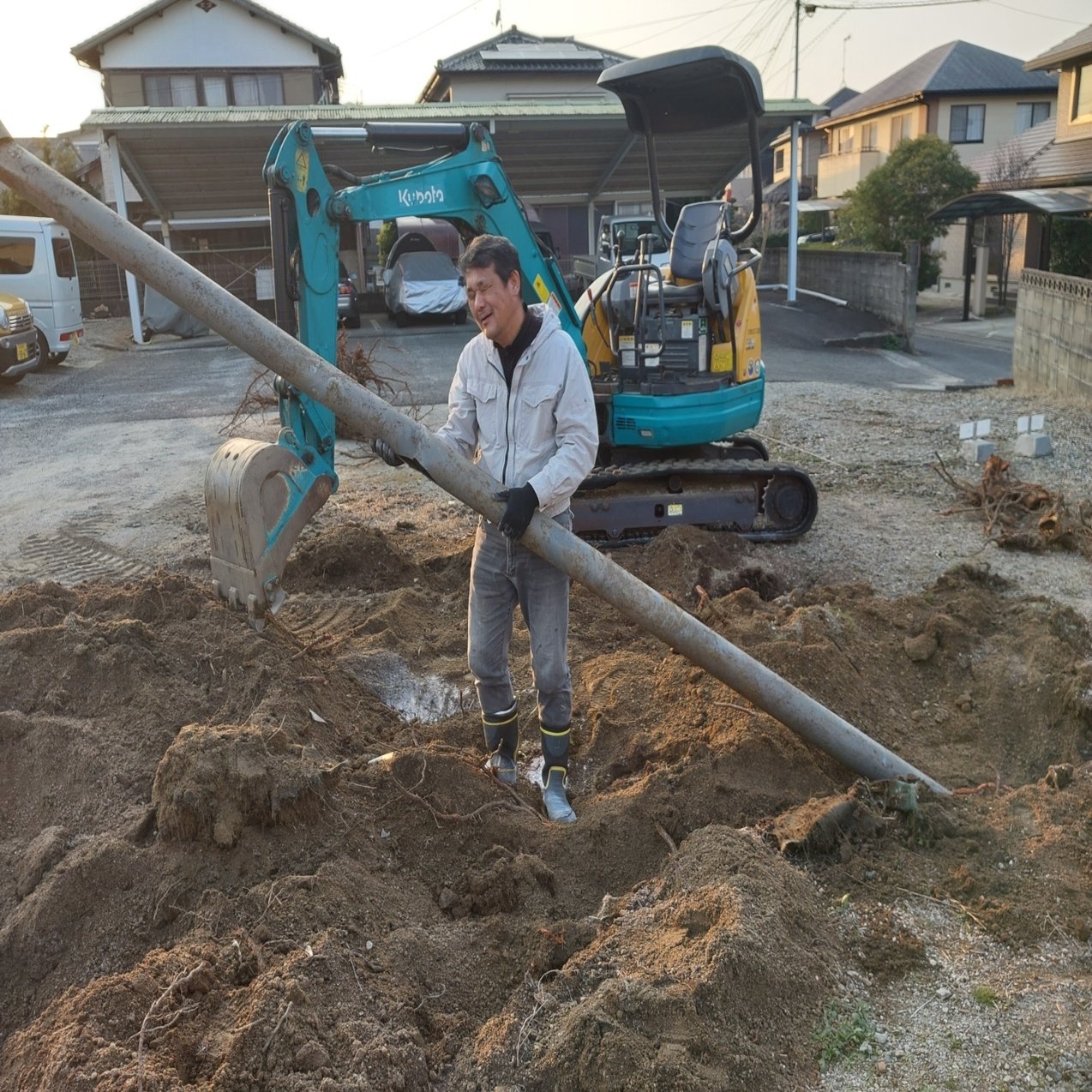 本日は、庭を崩して駐車場拡張工事を行いました!